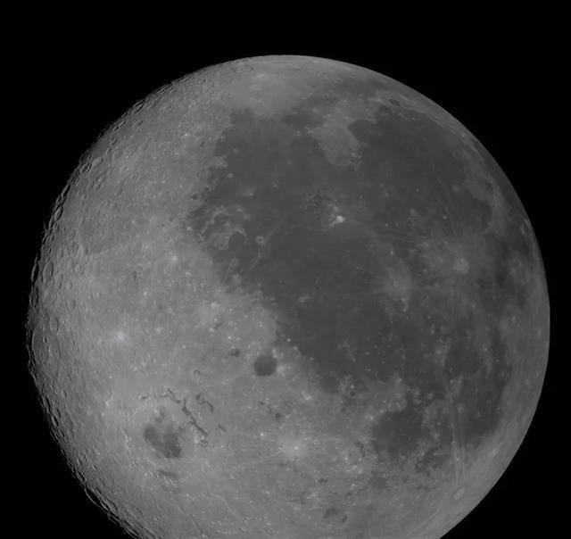 Foto van de maan, met de 'voorkant' aan de rechterzijde en de 'achterkant' aan de linkerzijde (foto: 6 april 2026).