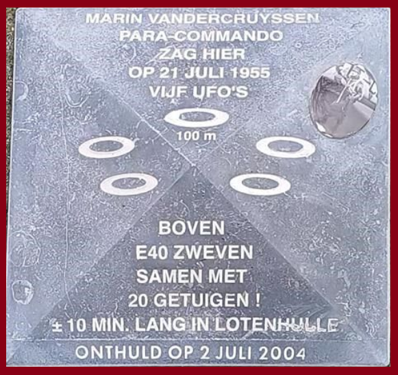 Volgens een lokaal mediabericht vond het oorspronkelijke incident plaats in juli 1955 toen een zekere Marin Vandercruyssen iets zag dat hij later beschreef als "vijf UFO's die in formatie op de E40 boven Lotenhulle van oost naar west zweefden". Hij was toen 18 jaar oud. Tot verbazing van wat hij beweerde waren er zelfs twintig 'getuigen die langs de weg waren gestopt om het vreemde tafereel alsook te aanschouwen. Zij zagen die zilverkleurige schijfvormige objecten die "met de snelheid van een zeppelin bewogen" eveneens totdat de dan plotseling uit het oog verdwenen. Je moet het maar willen geloven, hé! :-)