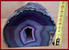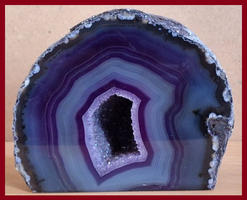 Agaat vind je in holtes van vulkanische gesteenten. Er ontstaat een zogenoemde agaatknol. Een holle agaatknol noemt men een geode. Wanneer hij massief en opgevuld is ontstaat de amandelagaat. De inwendige banden en lijnen kunnen bestaan uit chalcedoon, carneool, jaspis, rookkwarts, onyx, calciet, bergkristal, amethist en opaal - in dit geval: amethist.