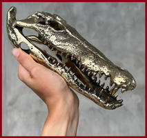 Deze zoutwaterkrokodillenschedel is gemaakt van gepolijst brons en staat prachtig als woondecoratie in uw interieur. Deze Crocodylus porosus soort komt voor in Zuid-Azië, Zuidoost-Azië en Oceanië. Het aantal ervan is inmiddels aanzienlijk afgenomen in het grootste deel van hun aanwezigheidsgebied, zijnde: Thailand, Cambodja, Laos, Sri Lanka en Vietnam. Dit meesterwerkje maakt dan ook deel uit van de collectie 'Onvergankelijkheid van zeldzame soorten' en gewijd aan de bescherming van bedreigde diersoorten.