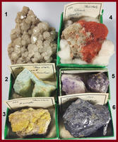 Indien je graag (half)edelstenen verzamelt mag deze collectie zeker niet ontbreken! Het assortiment bestaat uit Kwarts, Amazoniet, Zwavel, Potassium, Amethist en Galeniet. Afmetingen variëren tussen 5 cm en 12 cm. Totaal gewicht: 1.500 gram. In de eerste afbeelding werden de mineralen genummerd, waarvan hieronder een beetje uitleg..