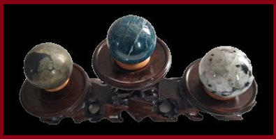 Het Art Deco display werd op een zuivere rituele manier speciaal ontworpen voor de presentatie van de halfedelstenen bollen, teneinde hun uitstralingen extra te versterken.
