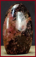 Gelieve nota te nemen dat vanwege de belichting de echte kleuren niet voor 100 % konden worden weergegeven. Anders gezegd: in werkelijkheid is deze Rhodoniet veel, véél mooier. :-)