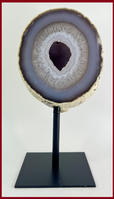 Dit is eveneens een prachtige, meest decoratieve Agaat uit Brazilië op een metalen standaard. Het is weliswaar een uniek stuk vanwege de schitterende kristallen in het centrum én de zachte uitstraling. Spijtig genoeg zijn die kristallen niet op alle foto's zichtbaar. Anders gezegd: in het echt is hij veel, véél mooier!