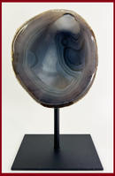 Een prachtig decoratief agaatstuk uit Brazilië op een metalen standaard. Het is weliswaar een uniek stuk vanwege zijn prachtige, kalmerende kleur, de prachtig polijsting, en de mooie uitstraling.