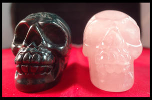 Gelieve nota te nemen dat vanwege de belichting de echte kleuren niet konden worden weergegeven. Anders gezegd: in werkelijkheid zijn deze schedels véél mooier. :-)