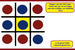 Inhoud: 112 gekleurde schijfjes, 28 van elke kleur, zijnde rood, geel, lichtblauw en donkerblauw + magneet aan koordje.